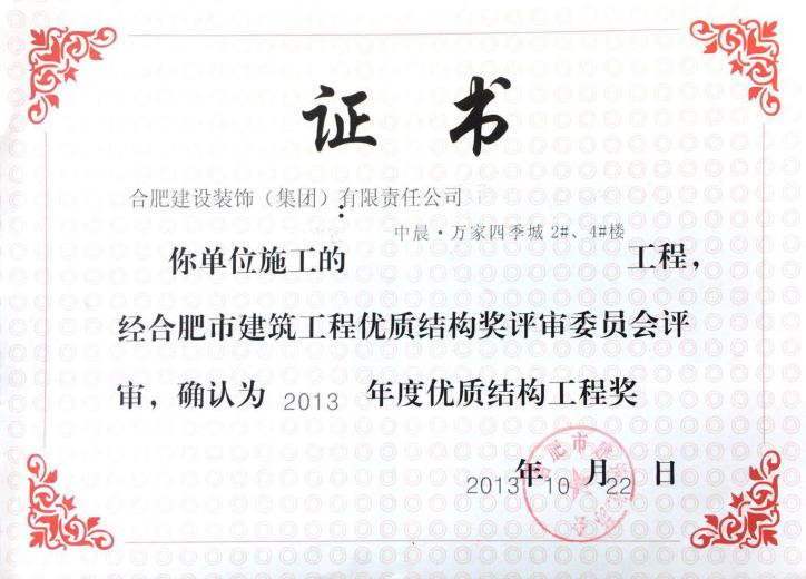 >2013年度优质结构工程奖--中晨万家四序城
