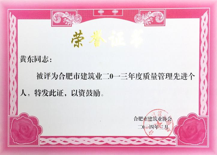 合肥市修建业2013年度质量治理先进小我私家——黄东