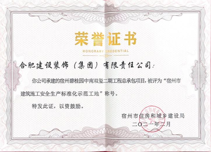 >宿州碧桂园中南双玺二期总承包工程--宿州市修建清静生产标准化树模工地