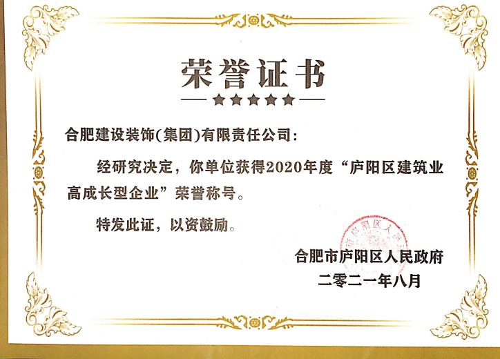 2020年度庐阳区修建业高生长型企业
