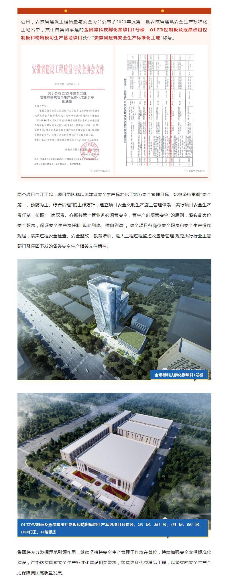 集团新增两个“安徽杏宇娱乐筑清静生产标准化工地”